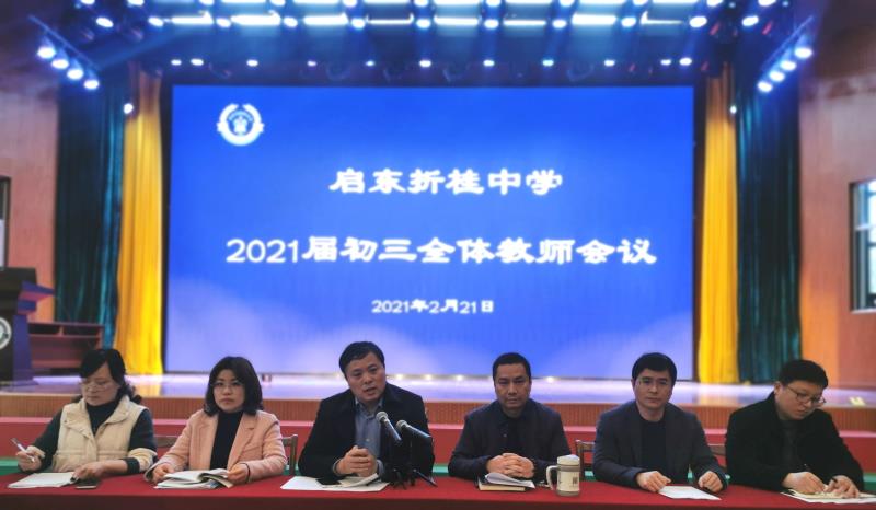 春回大地,万物鲜妍。2月21日下午,折桂中学初三全体教师齐聚报告厅,为不足百日的初三冲刺共绘战略图。本次初三年级会议由副校长黄裕花主持,会议分为三个议程。第一议程由管笛副校长对上学期期末考试数据作精准分析,第二议程由周勇校长掌舵领航,为初三最后九十八天的冲刺引领方向。第三议程是初三创新人才培养团队合影留念,分享校长室精心准备的小礼品。