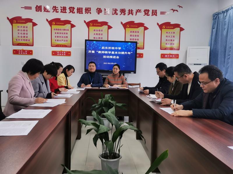 为深入落实启东教育体育局“启东市教师教学基本功提升年”这个年度教育盛事,加快折桂中学教师队伍专业化建设,全面夯实并提高教师的教学基本功,为启东教育高质量发展培育高水平人才,3月4日上午,启东折桂中学隆重召开 “启东市教师教学基本功提升年”活动推进会。轮值校长袁辉辉副校长,各学科主任和备课组长参加了会议,会议由教科室主任顾凯华主持。